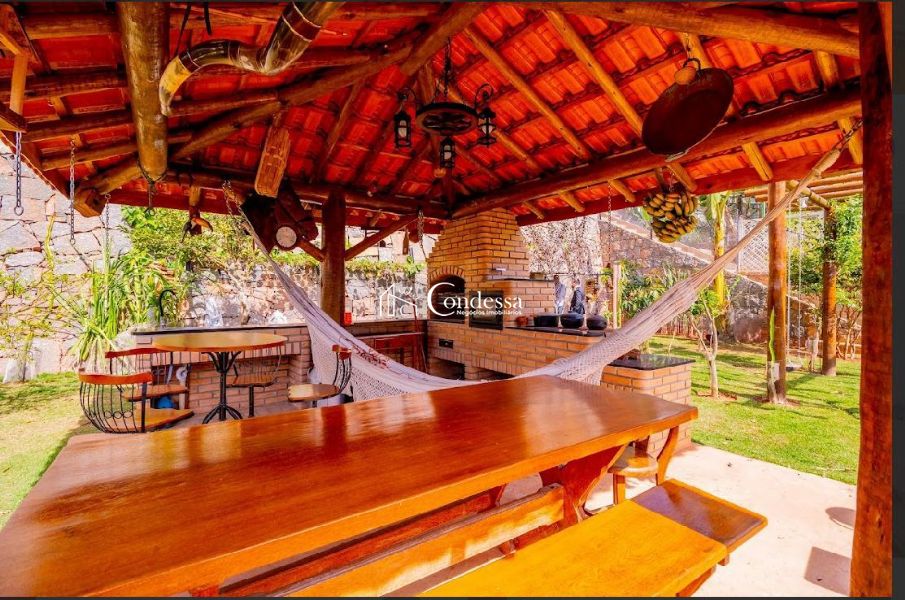 Redário sob quiosque rústico com fogão a lenha, proporcionando uma conexão única com a natureza e um estilo de vida campestre dentro da cidade
